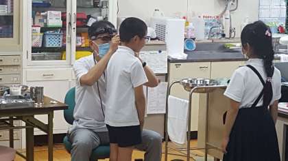 耳鼻科検診がありました。1年生から順番に、校医先生に見ていただきました。