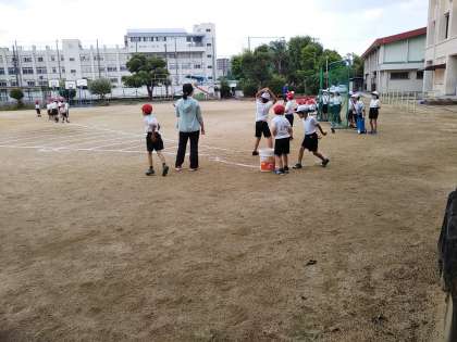 今日の1・2校時に、全学年でソフトボール投げの測定をしました。