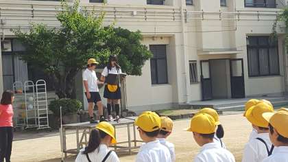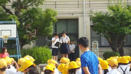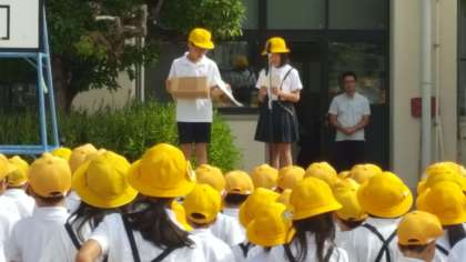月曜日の朝は、全校朝会があります。校長先生のお話の後に、看護当番の子ども達から先週の反省と、今週の目標の話がありました。続いて、代表委員会からのお知らせがありました。