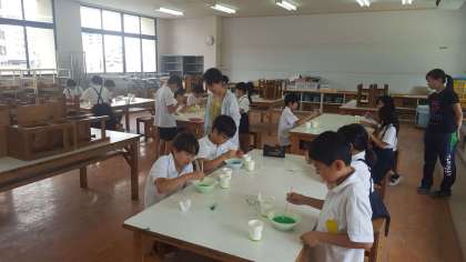 音楽クラブは、パートを分けて合奏の練習をしていました。創作クラブは、スライムを作っていました。室内スポーツクラブは、ドッジボールの試合をしていました。