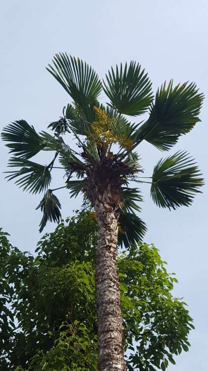 細身のしゅろの木に花が咲きました。