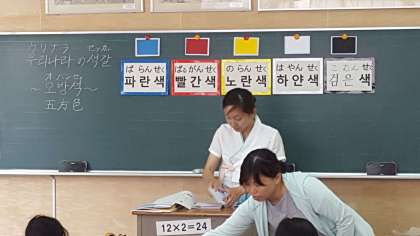 民族クラブの活動がありました。学習したことは、五方色(青・赤・黄・白・黒の5色)についてです。この5つの色は、方角を表すそうです。黄(中央)・黒(北)・白(南)・青(東)・赤(西)で、5つの方角を表す色、五方色です。子ども達も勉強になりましたが、私も勉強になりました。