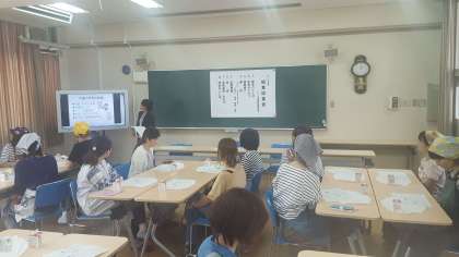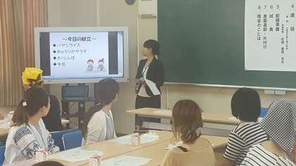 校長先生の話の後に、栄養教諭の講和があり、みなさん熱心に聞いておられました。
