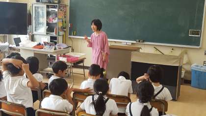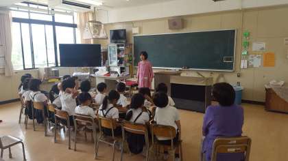 2年生の様子です。みんな興味津々で聞いていました。すごく盛り上がり、教室内に大きな歓声が響いていました。
