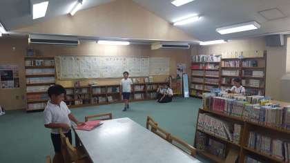 お昼休みに図書館開放がありました。本を借りに来た子、椅子に座って読む子、カーペットで読む子等、それぞれ読書を楽しんでいます。