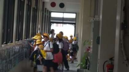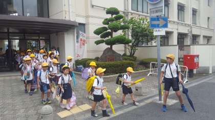 地区仲よし会の話し合いの後、集団下校をしました。今日は全学年で、同じ時間に一斉に下校します。雨が降らなくてよかったです。