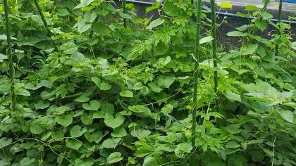 学級園の、植物が生い茂っています。暑くなるにつれ、成長に勢いを感じます。