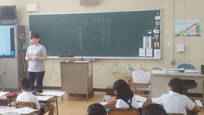 2年1組は国語の授業でした。文しょうを書こうのの単元で、原稿用紙を使って作文を書いていました。書く内容を、話し合いながら書いていました。