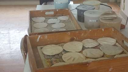 1年生は、図工室で陶芸の学習をしていました。自分の手形をつけた粘土に塗る釉薬について話し合っていました。1年生の時の手形は、いい思い出になりますね。