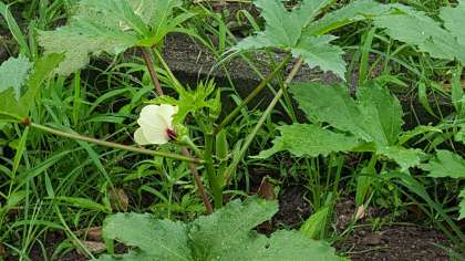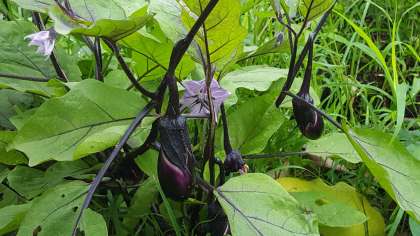 オクラ・なすびもたくさん実っています。中道小では、夏野菜の収穫の時期を迎えています。