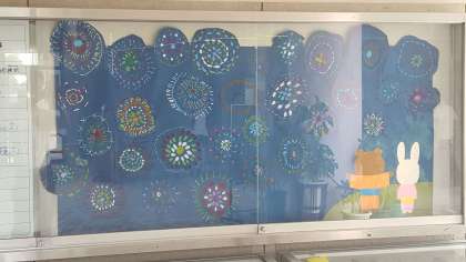 1年生の玄関掲示の作品、「花火」です。