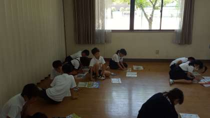 あなたの好きなものを、プリントに書いていました。文字だけでなく、絵もつけてかいていました。教科書を見ながら、一生けん命にがんばっていました。
