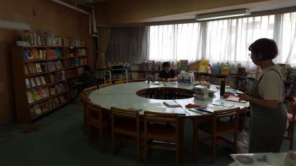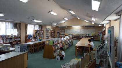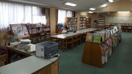 今日の水泳教室に合わせて、図書館開放が行われています。ボランティアの方に読み聞かせをしていただいたり、自由に読んだりと、涼しい図書室で読書を楽しむことができます。