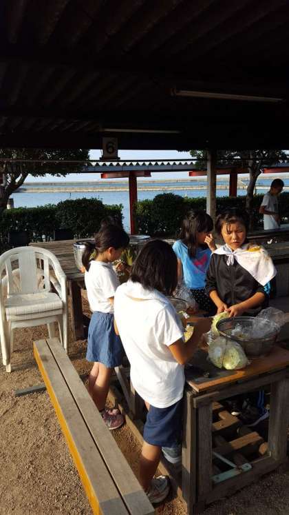 野菜を洗ったり切ったり準備中です。