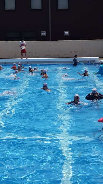 低学年の子ども達も、最後までよく頑張りました。バタ足・クロールの練習や水遊びと楽しく活動ができました。