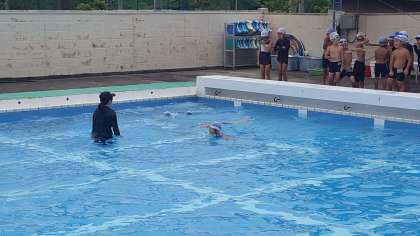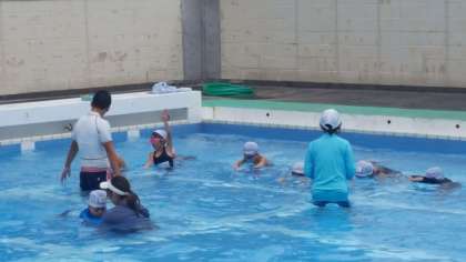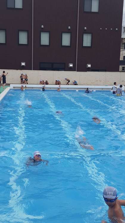 1・2年生は、課題別のグループに分かれて、学習しました。水が少し冷たかったのですが、がんばって練習していました。