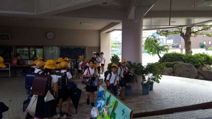 雨のやみ間に登校ができました。今日は1日雨の予報が出ています。教室で静かに過ごしましょう。