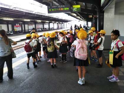 3年生が、社会見学で環状線に乗って、大阪駅と阿倍野ハルカスの見学に行きました。