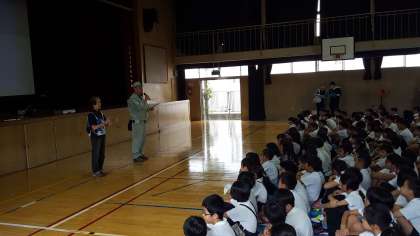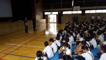 今日は地域との合同での防災訓練がありました。たくさんの方が参加してくださいました。講堂がぎっしり満員になりました。