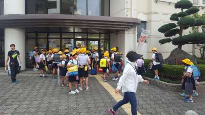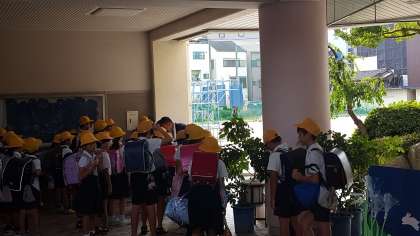 みんな元気に登校しています。蒸し暑い日になりそうですが、今日も1日がんばりましょう。