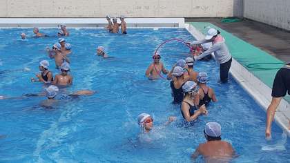 5時間目に、5・6年生のプール納めがありました。水泳指導の後に、自由時間がありました。ものすごく暑い日だったので、みんな思い思いに楽しんでいました。