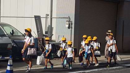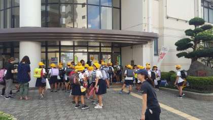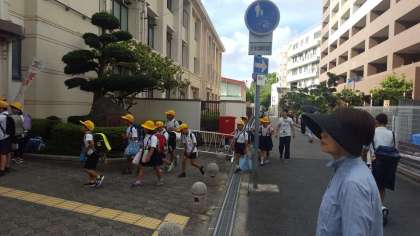 ぎらぎら日差しの照りつける中、子ども達は元気に登校しています。週の後半には涼しくなるようです。もう少しです、みんな頑張りましょう。