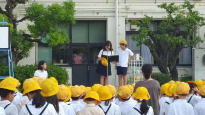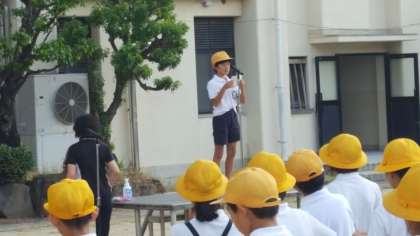 2学期最初の全校朝会がありました。校長先生から、重陽の節句・お月見・敬老の日のお話がありました。看護当番から、先週の反省と今週の目標を伝え、健康委員会から、手洗いについての連絡がありました。
