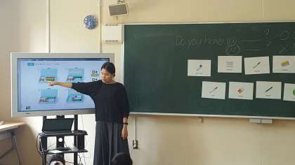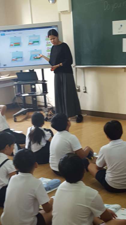 4年生が、英語の学習をしました。今日は、Do you have a (an) 〜 ?を学びました。電子黒板を見て、C-netの先生の質問に答えていました。