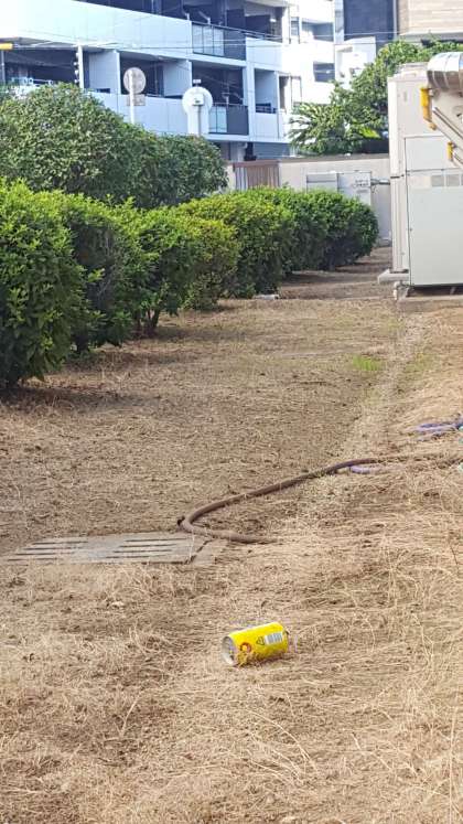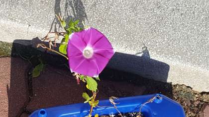 夏の名残を惜しむかのように朝顔が一輪咲いていました。西側の校舎裏にいつも同じ空き缶が投げ込まれています。いったい誰がするのでしょうね。