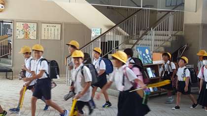 少しだけ秋を感じる朝、子ども達は元気に登校しています。でも、日中は暑くなりそうです。こまめに水分補給をしましょう。