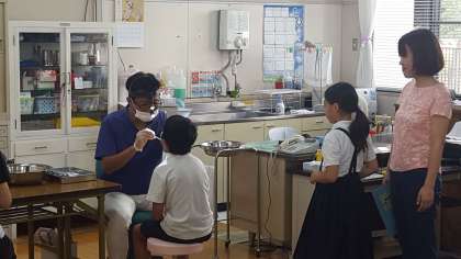 中島先生に来校いただいて、本年度2回目の歯科検診を行っています。4年生の検診の様子です。みんな静かにルールを守って検診を受けています。今日は4・5・6年生の検診です。虫歯の見つかった人は、早めにお医者さんに行きましょう。