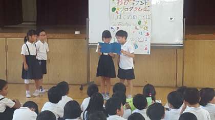 最後に2年生が終わりの言葉発表し、楽しかったおもちゃランドは終わりました。その後、1年生からお礼の言葉がありました。