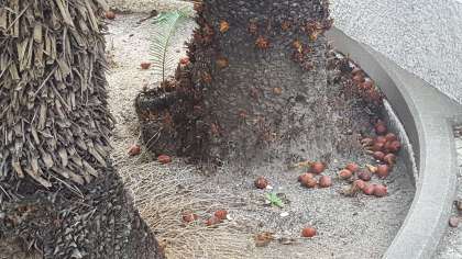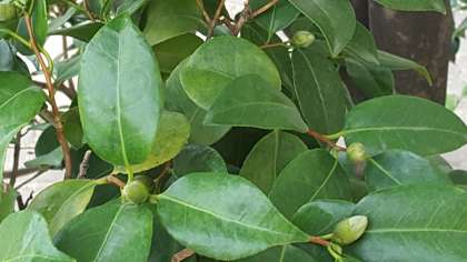椿には、つぼみがついています。季節は少しづつ移ろいでいます。ソテツの実がいっぱい落ちています。植えたら芽が出るかもしれません。
