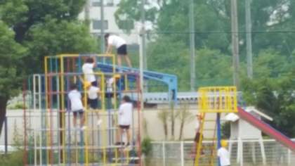 曇って涼しい1時間目の休み時間、子ども達は運動場にたくさん出ています。ボール運動をしたり、遊具を使ったりと久しぶりににぎわいました。