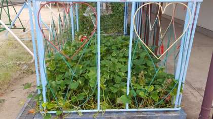 昨日2年生が手入れしたいも畑です。すっきりしました。猫が校内に入ってきて困っています。何とかならないものでしょうか。