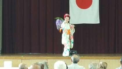第2部の演芸では、本校児童が藤娘の舞踊を披露しました。美しい衣装に身を包み、華麗に舞う姿に、会場の皆さんはうっとりとされていました.とても素晴らしい舞でした。