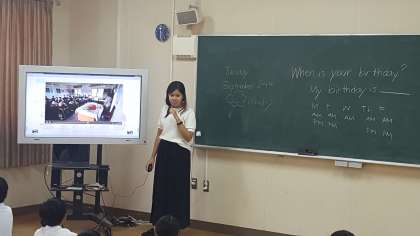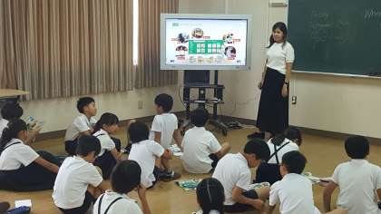 5年生の英語活動の様子です。誕生日の尋ね方や教科の英語名を学習しました。体育や家庭科を英語でどういうのか、5年生に尋ねてみてください。