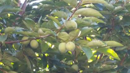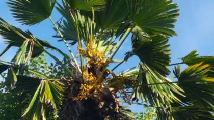 シュロの木に実がついていました。柿の実が大きく実ってきました。
