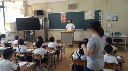 2年生を対象に歯みがき指導がありました。前半は、歯磨きの大切さや虫歯についてのお話がありました。子ども達は歯ブラシや鏡を用意して、真剣に話を聞いていました。