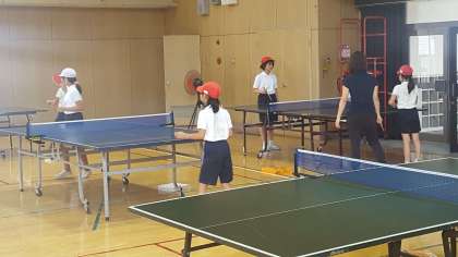 今日は、卓球をしていました。講堂には、ピン球を打つ、軽やかな音が響いていました。