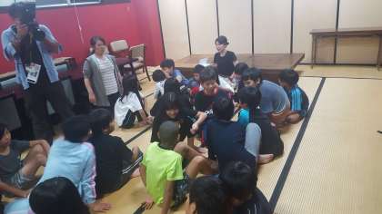 最初は、伝言ゲームです。最後までつながるのでしょうか?