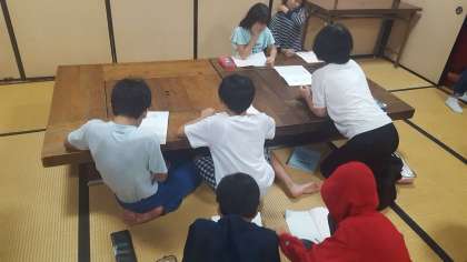 夜の会 2 保健係は健康チェックをしました。明日は5時半に、起床です。この後はゆっくり寝ましょうね。