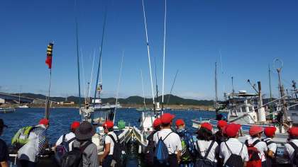菅島の散策 3 竿が2本出ている船は、鰹や鰆を獲る船だそうです。鳥羽では、秋冬の鰆が一番おいしいそうです。