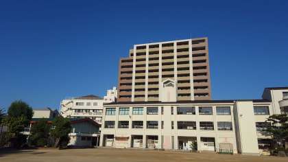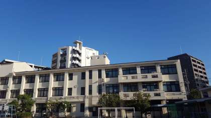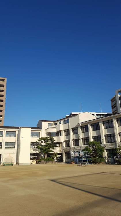 校舎の上の空にはどこを見ても雲がありません。絶好の天気です。
