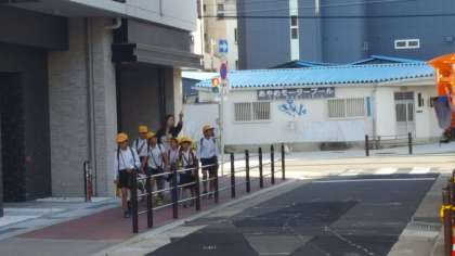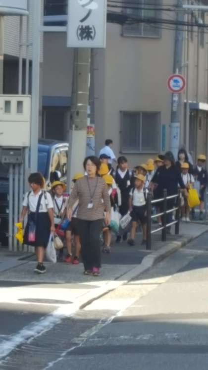 秋晴れのさわやかな朝、子ども達は元気に登校しています。今日は、運動にも勉強にも、もってこいのよい天気です。みんなしっかりがんばりましょう。