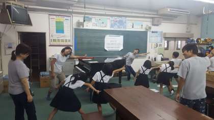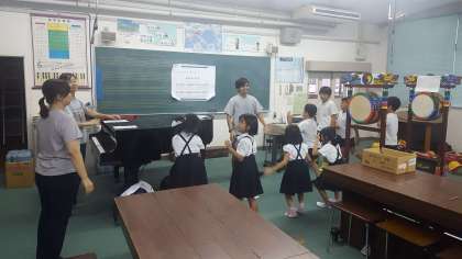 民族クラブの活動が、音楽室と講堂で行われました。音楽室では、発表会で歌う歌と振付の練習をしました。大きな振り付けで元気に歌うととても楽しい曲です。しっかり覚えましょう。