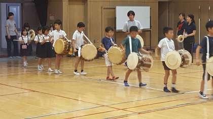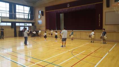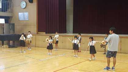 講堂では、太鼓の練習でした。入場から演技する位置を確認して、体形変化の練習をしました。もう少しで完成です。