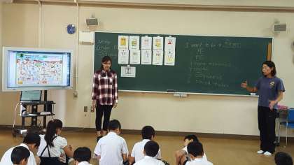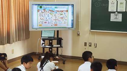 5年生の英語の学習の様子です。今日の学習は、I want to be a 〜 でした。自分が将来なりたい職業を考えて発表していました。carpenter ・baseball player など発表していました。