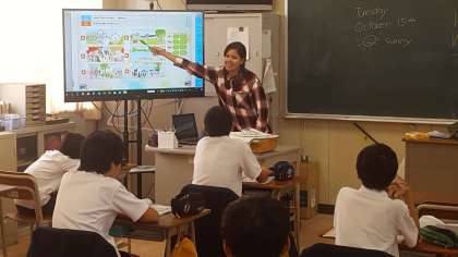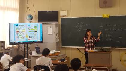 今日の英語の学習は、教室でありました。今日は、I have a(an) 〜 でした。住んでいる町にある施設の発音を、耳でしっかり聞いて、どの町かを当てるクイズも的確に答えていました。さすがです。