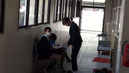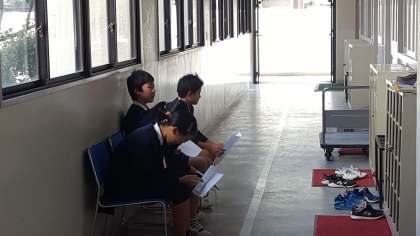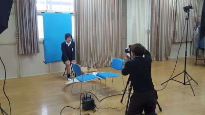 6年生が、卒業アルバム用の写真の撮影をしています。個人写真を撮る様子です。多目的室で1人ずつ撮影しています。3枚目は、写真を撮っている様子を撮った写真です。今日はこの後、クラス写真を撮ったり、グループ写真等を撮ります。